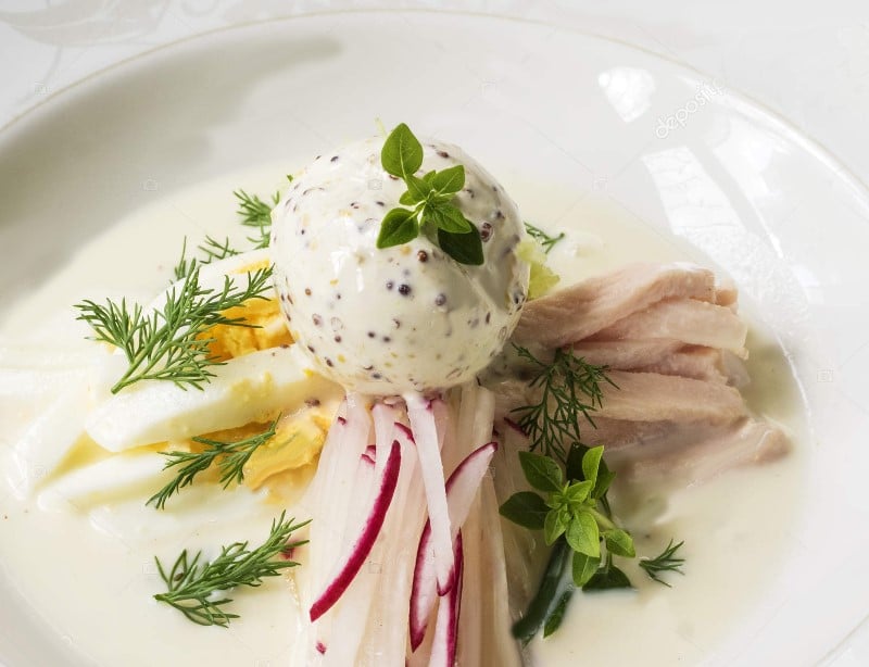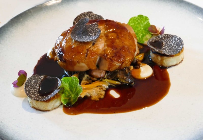 Ris de veau fermier doré au sautoir, céleri confit et chanterelles jaunes, noix de cajou et jus de veau à l’Amaretto par François Sauvêtre