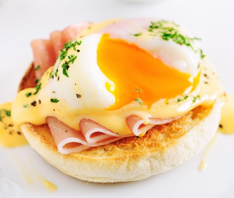 Pancake à l’œuf mollet au jambon et fromage