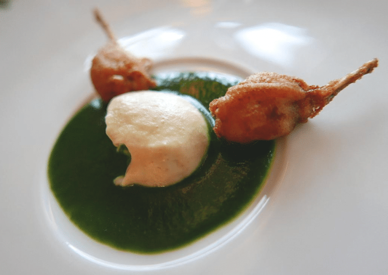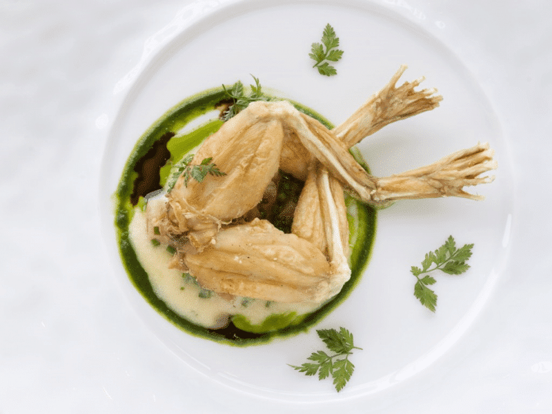 Jambonnettes de grenouilles, purée d’ail et coulis de persil par Bernard Loiseau