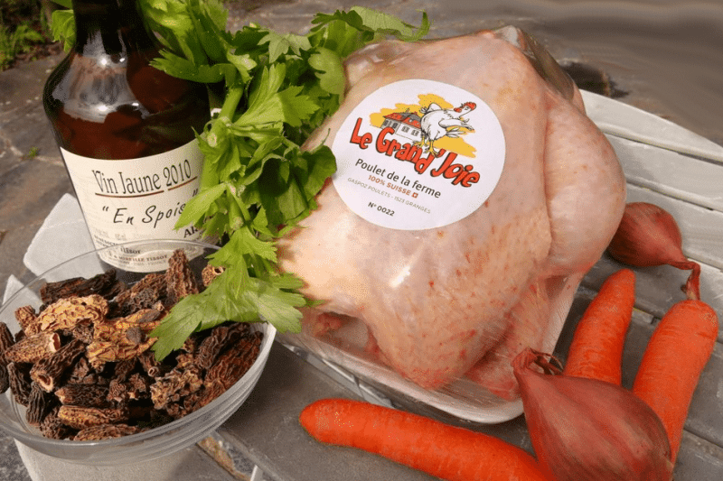 Ingrédients du poulet fermier au vin jaune et aux morilles