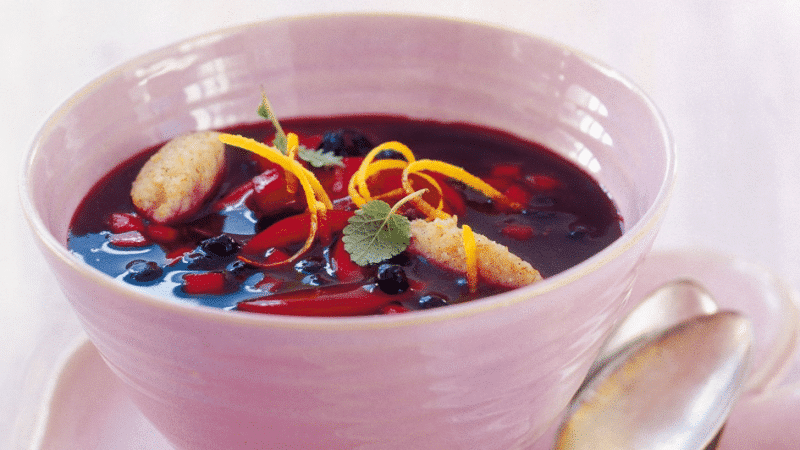 Kaltschale aux fruits rouges et au vin rouge