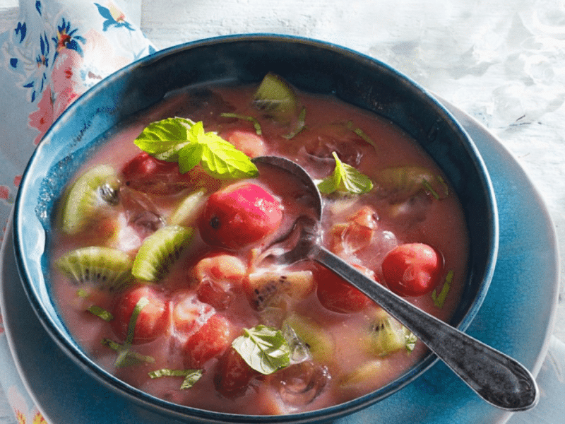 Kaltschale aux fraises et à la rhubarbe