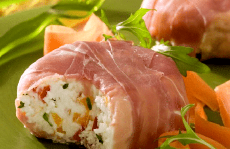 Pannequet au jambon et fromage blanc à la macédoine