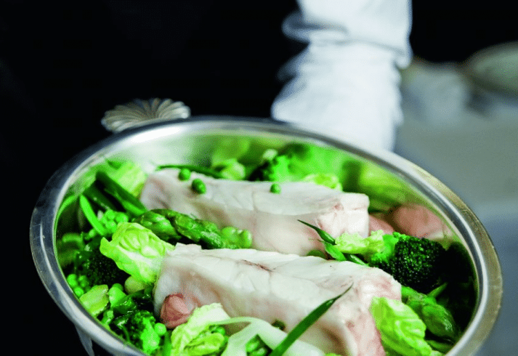 Tronçons de turbot étuvés et blanquette de légumes verts par Alain Ducasse