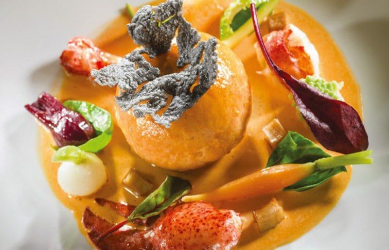 Mousseline de homard et de brochet aux petits légumes et au jus de carapace