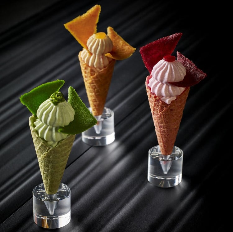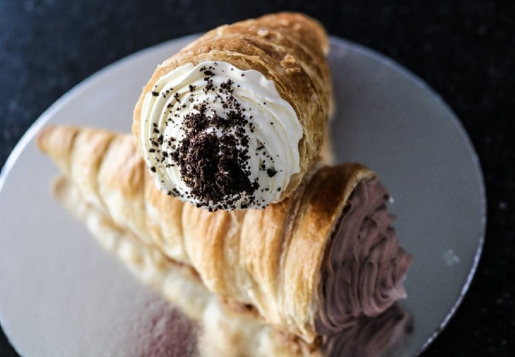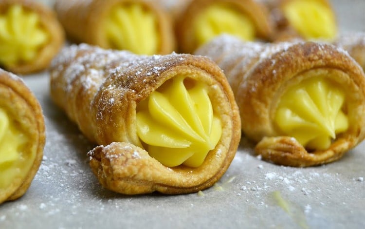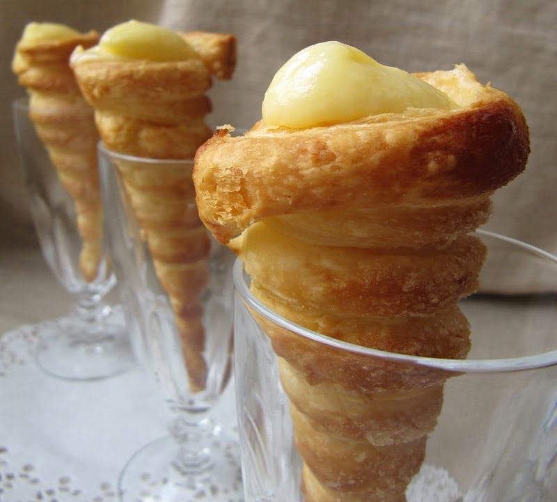 Cônes suisses de pâte briochée fourrée à la crème pâtissière