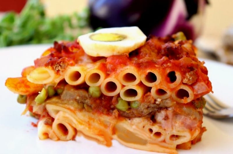 Coupe d’un plat de pâtes ncasciata