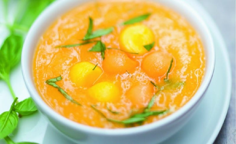 Soupe de melon, mangue et basilic