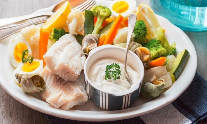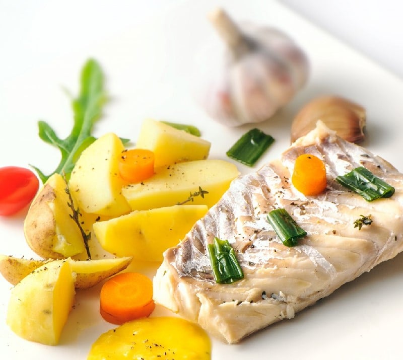 Dos de cabillaud poché, aïoli et pommes de terre primeurs
