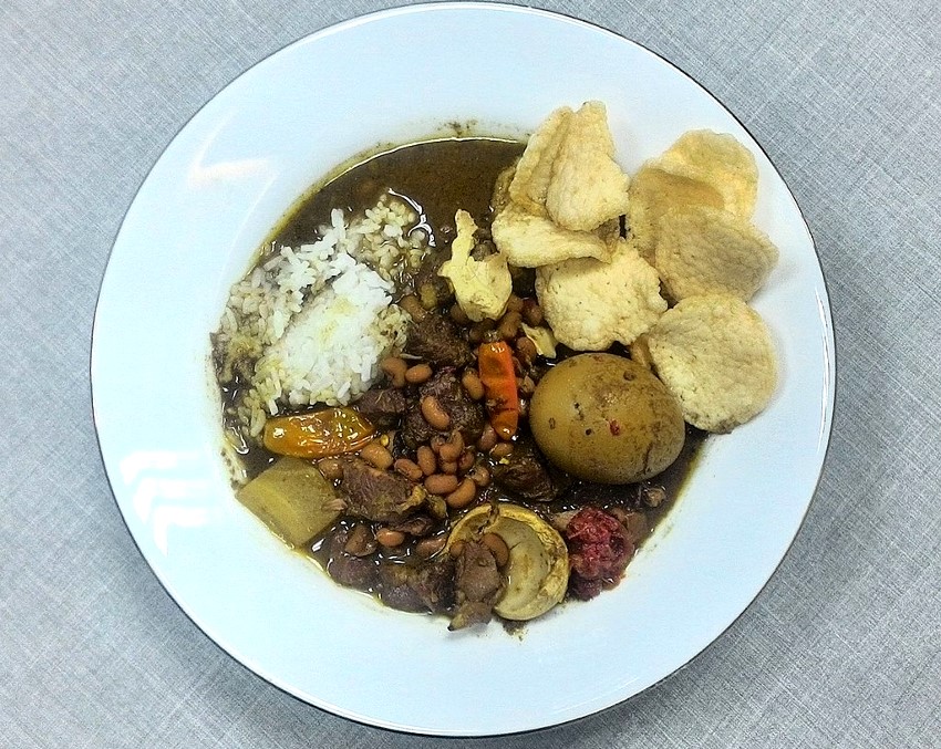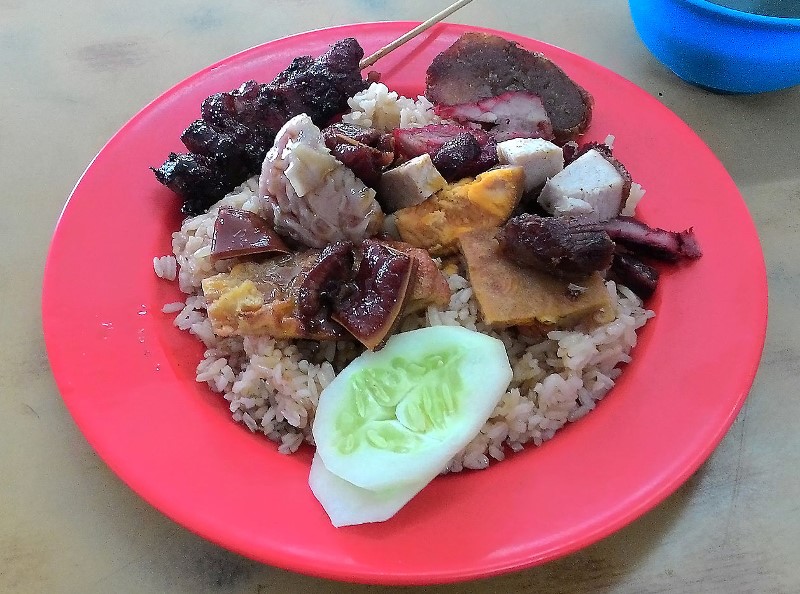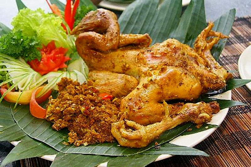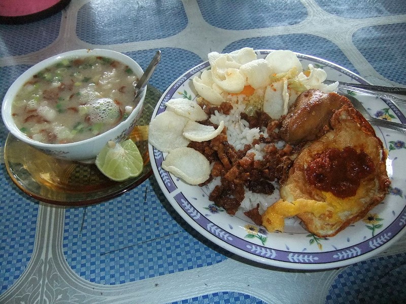Nasi campur de Jeneponto au poulet au miel et kupruk