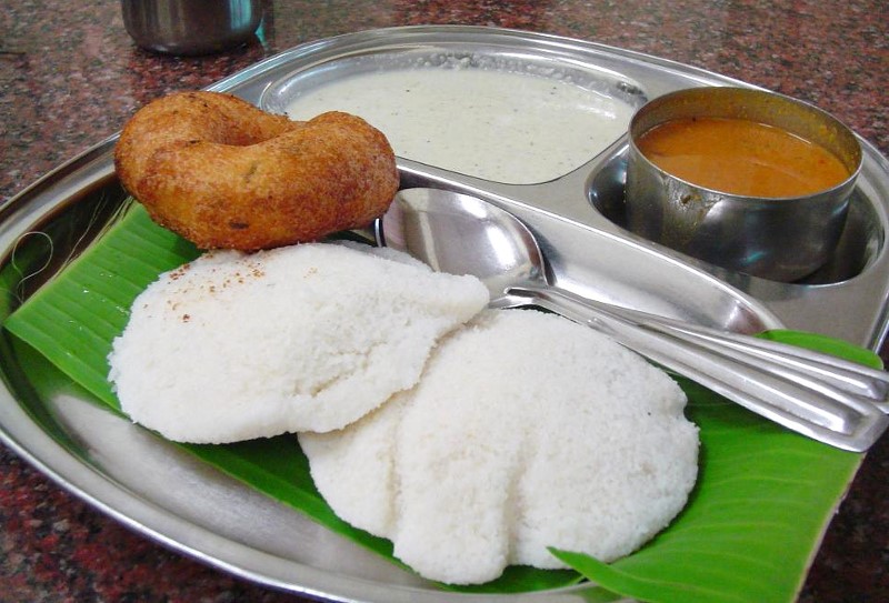 Idlis accompagnés d’un vada, de sambal et de chutney