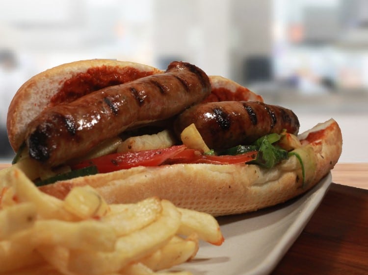 Sandwich aux merguez accompagné de pommes frites