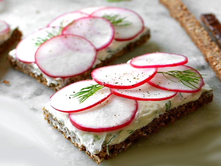 Tea sandwich au radis et pumpernickel