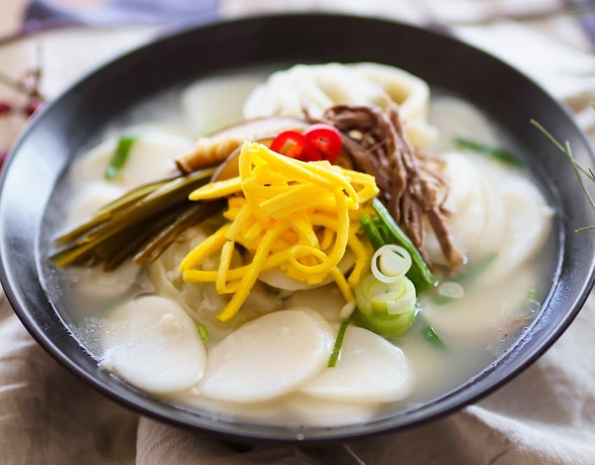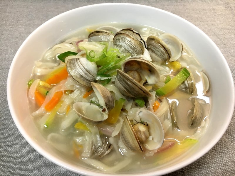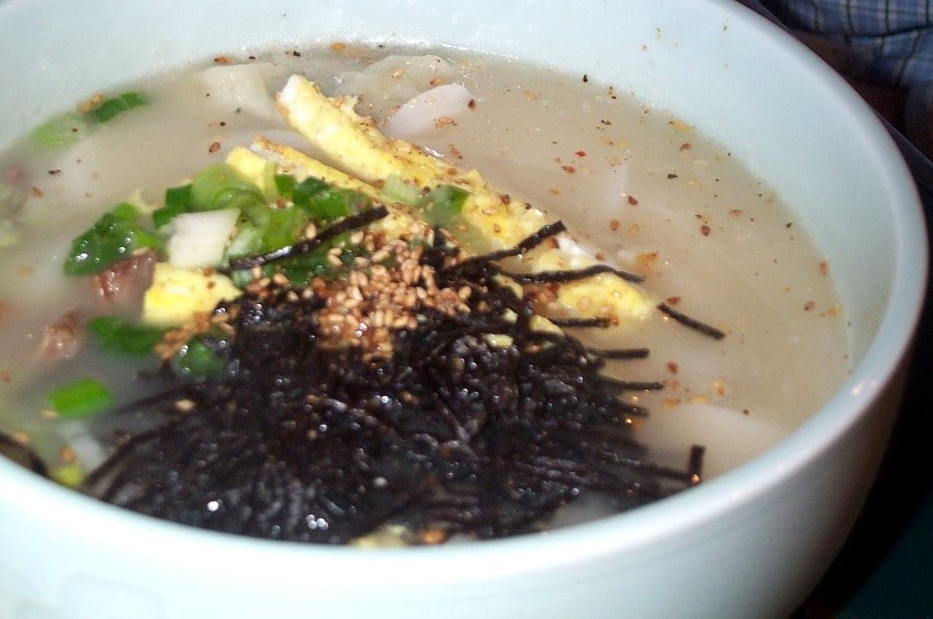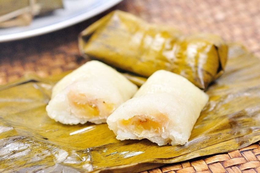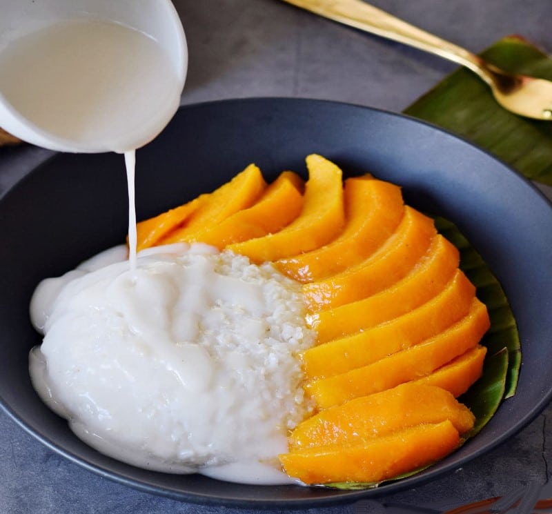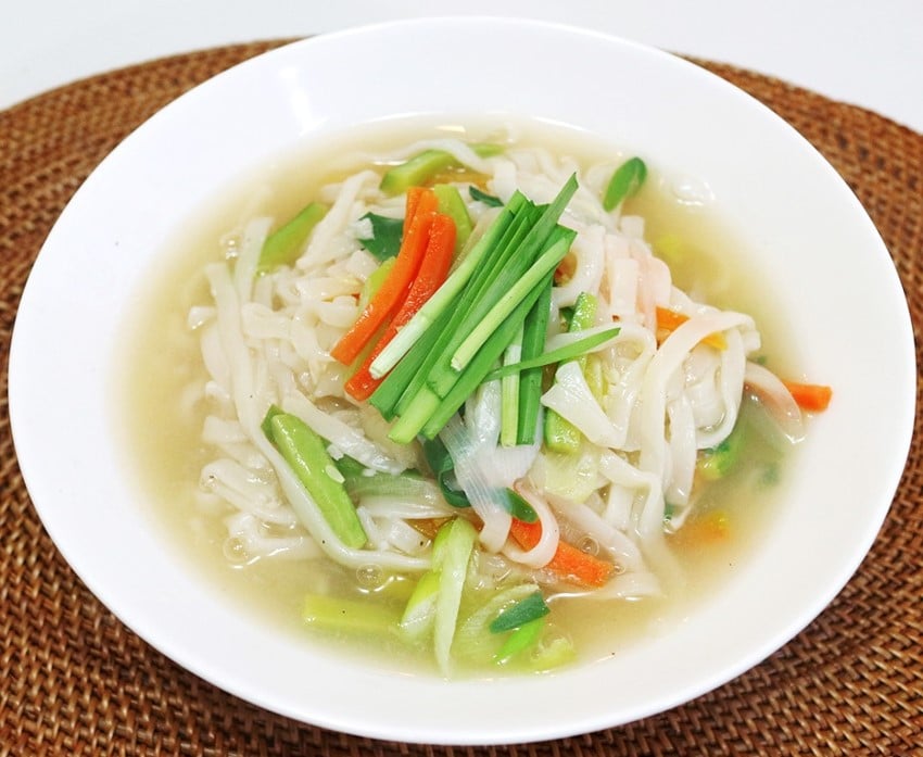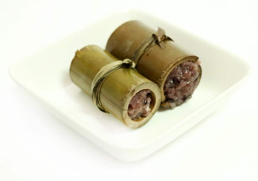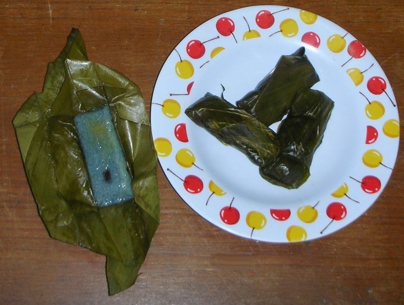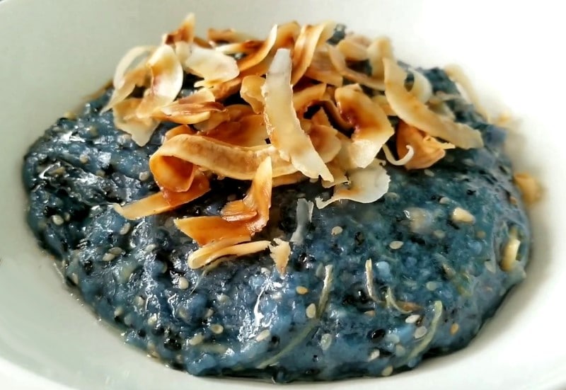Thai khao tom coloré en bleu avec des fleurs de Clitoria ternatea