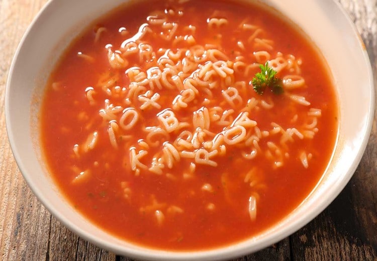 Soupe à la tomate aux pâtes alphabet