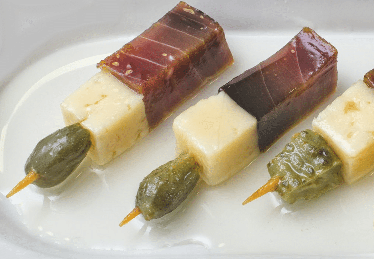 Pintxos de thon, manchego et cornichon