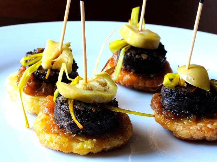 Pinxtos de morcilla à la marmelade d’oignon rouge et piment