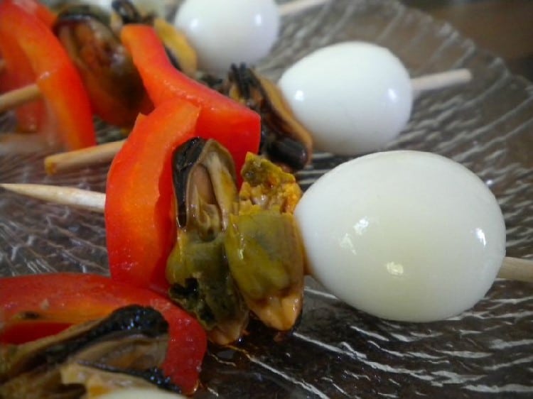 Pinxtos œuf de caille, moule et poivron
