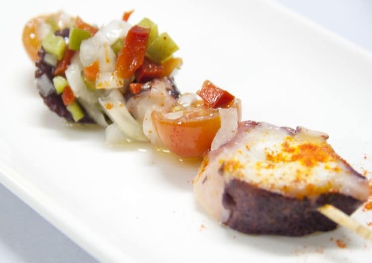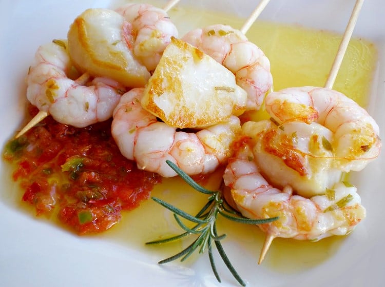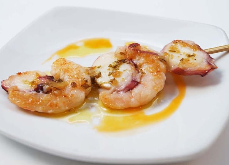Pintxos en brochettes de crevettes et de noix de Saint-Jacques