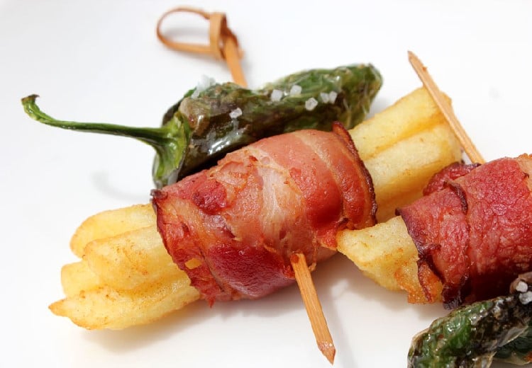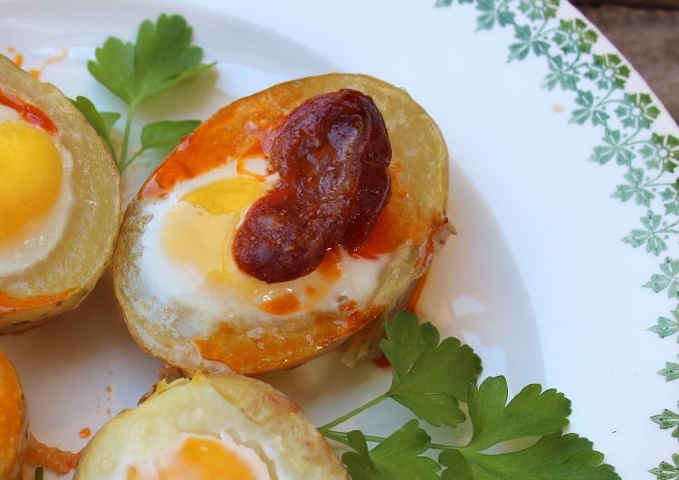 Pintxos de pomme de terre à l’œuf de caille et chorizo