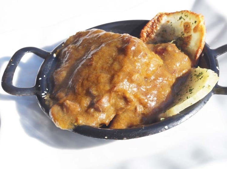 Pintxos en cassolette de bajoue de veau et pommes sautées