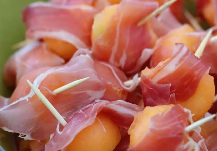 Piqués de melon et jambon cru