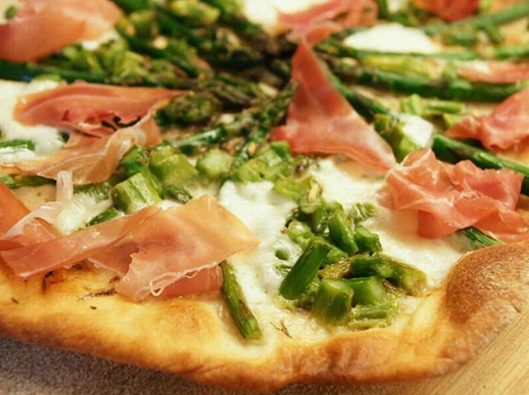 Pizza aux asperges vertes et jambon de parme