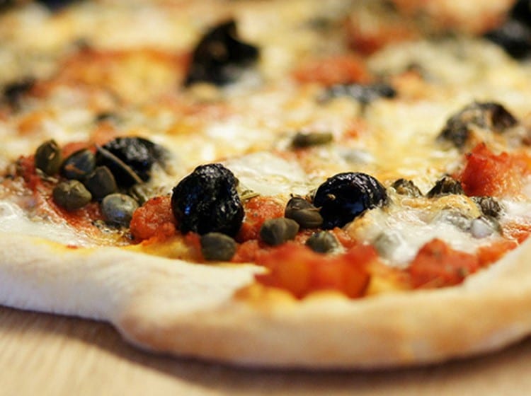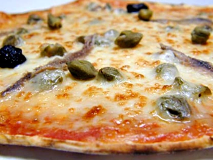 Pizza sicilienne (anchois, olives noires et câpres)