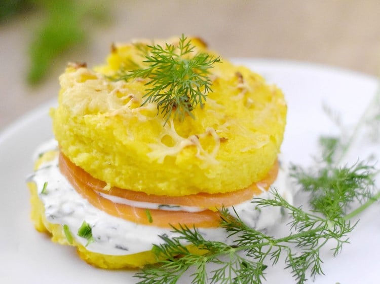 Burger de polenta au saumon fumé et crème à l’aneth