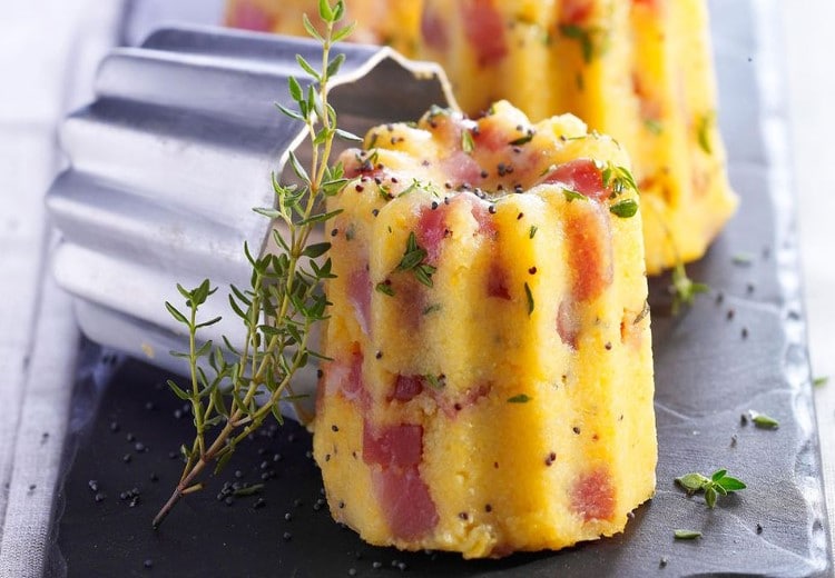 Cannelé de polenta au fromage et jambon