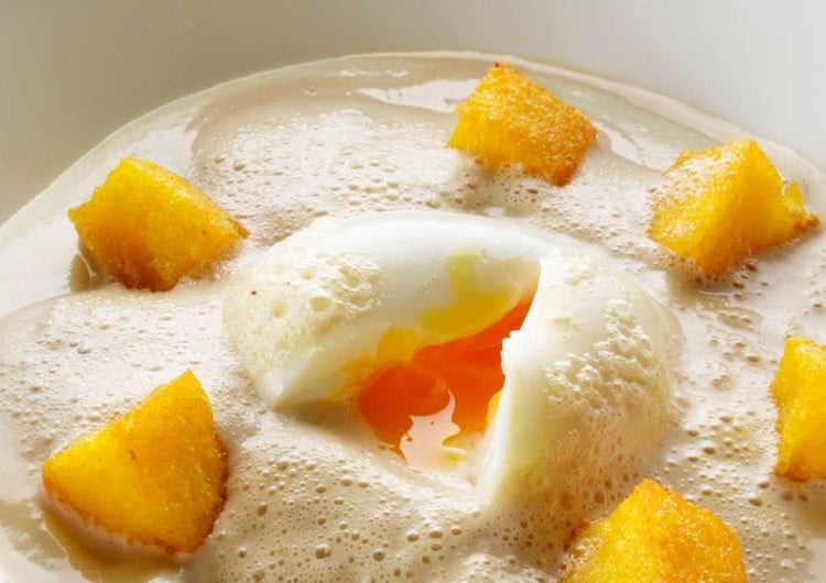 Polenta à l’œuf poché, émulsion à l’orange