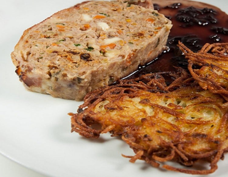 Tranche de pain de viande et galette de pomme de terre