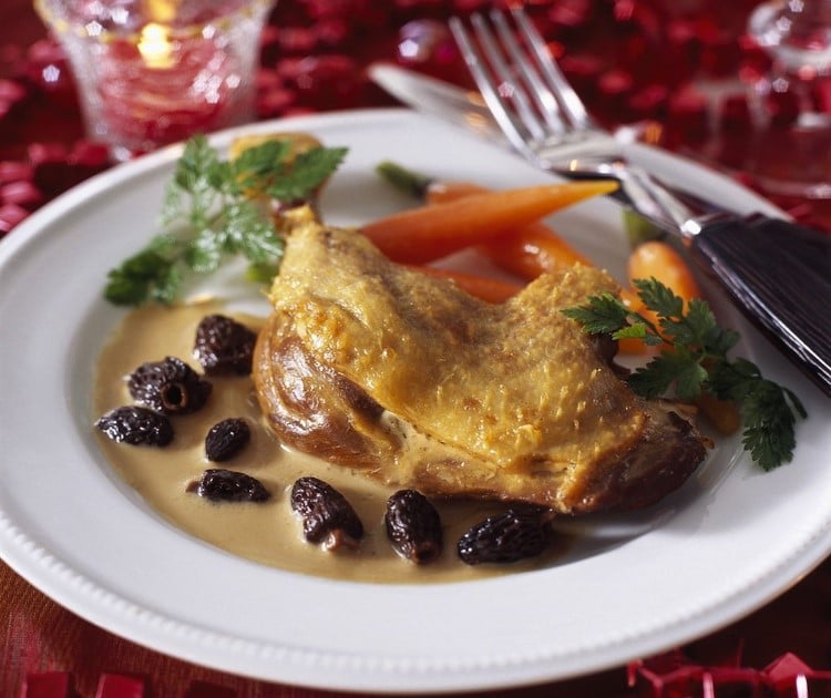 Poulet au vin jaune et aux morilles