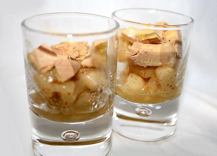 Verrines de panacotta de foie gras et confit d’oignon doux