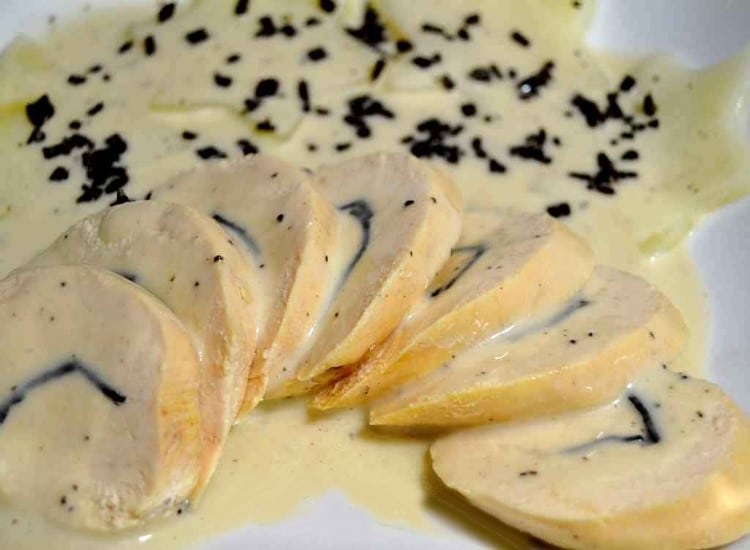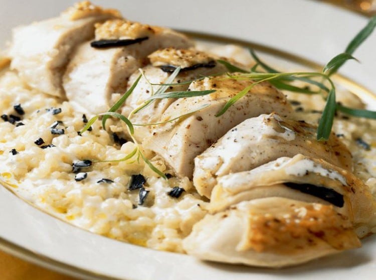 Suprême de chapon demi-deuil et risotto crémeux à la truffe