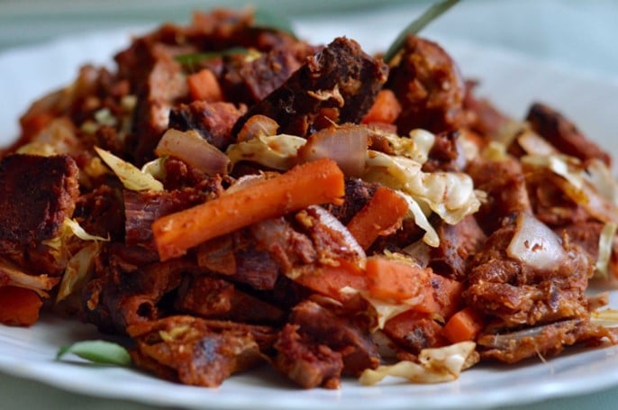 Légumes aux morceaux de poisson salé des Maldives