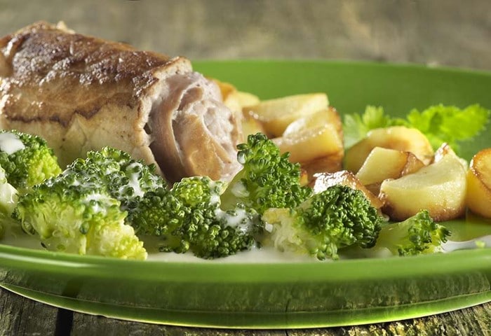 Roulade de veau et brocolis au gorgonzola et pommes sautées
