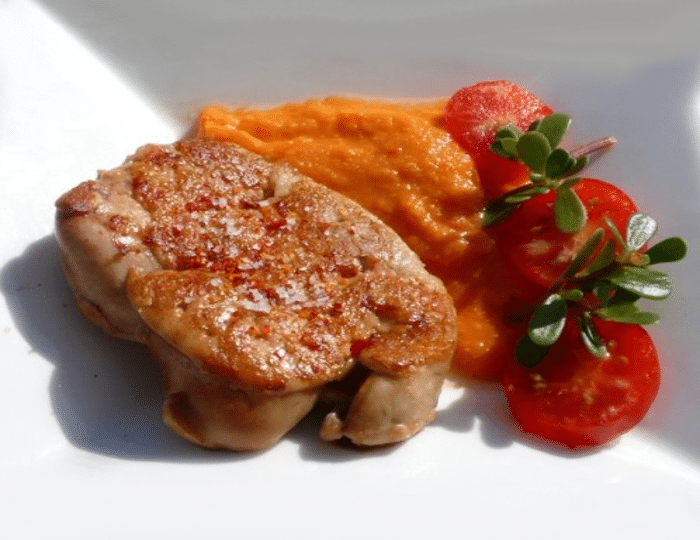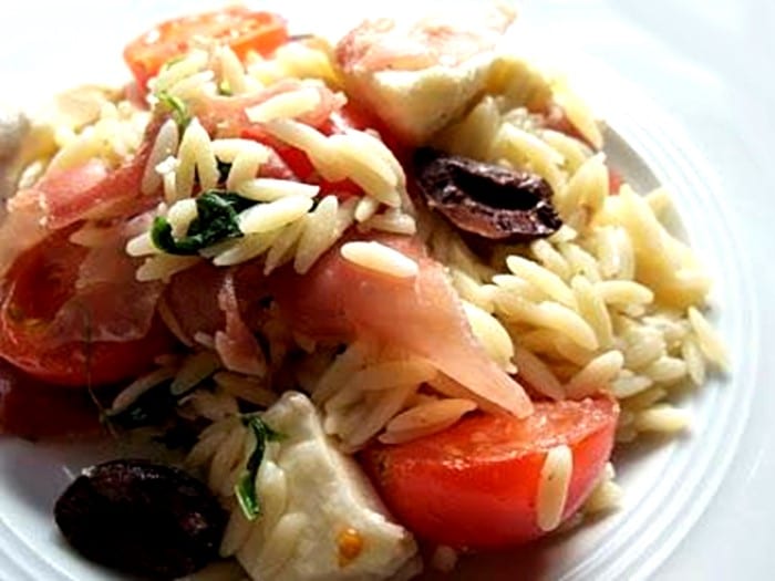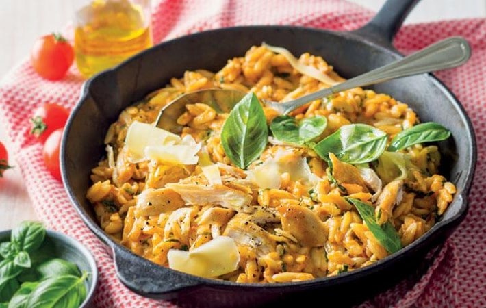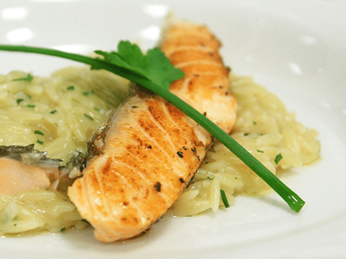 Filet de saumon poêlé au citron, pâtes risoni aux fines herbes