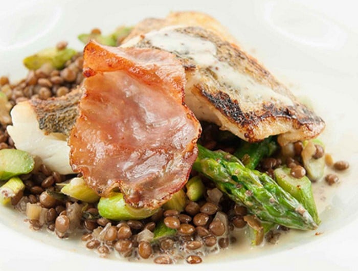 Dos de sandre aux lentilles du Puy et asperges vertes