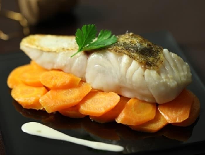Pavé de sandre aux carottes fondantes et crème au yuzu