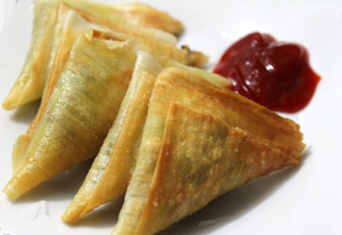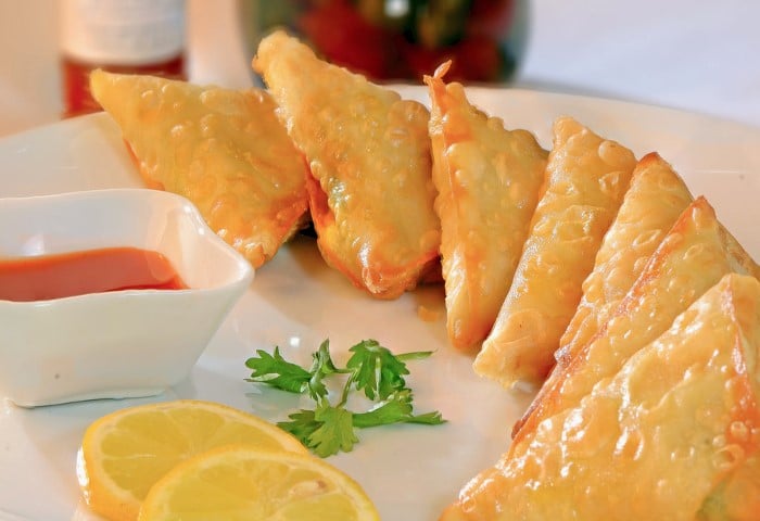 Samoussa de la Réunion à l’ananas et coulis de mangue