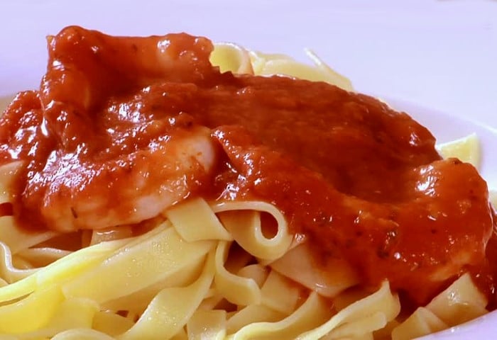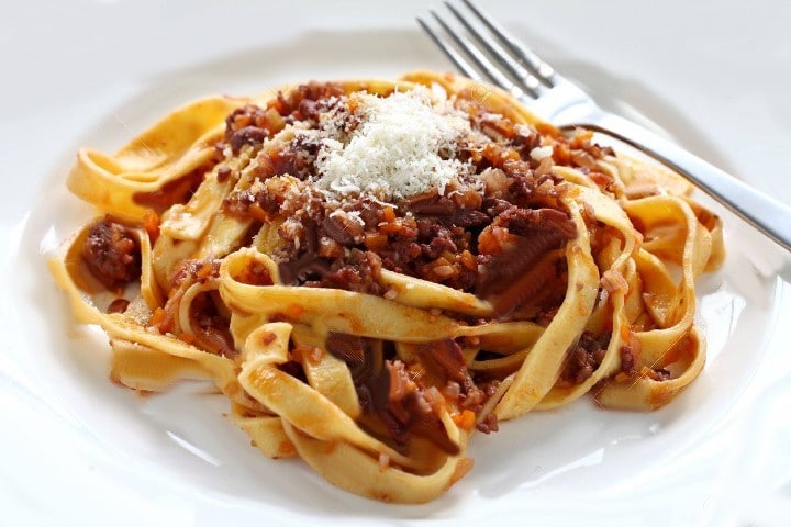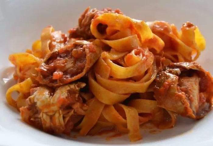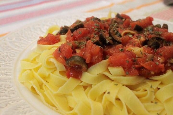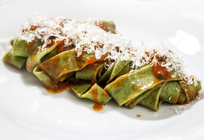 Tagliatelles à l’épinard, sauce tomate et parmesan