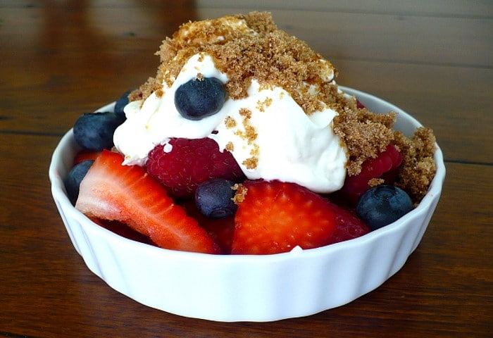 Fruits rouges, sour cream et sucre brun