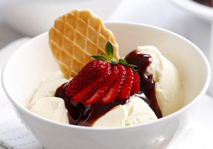 Glace à la sour cream et coulis de fraises