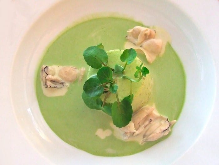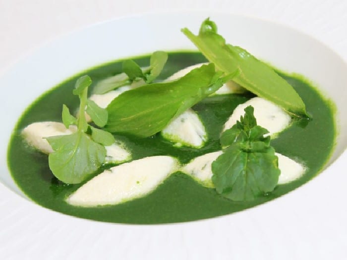 Velouté de cresson aux cuisses de grenouilles