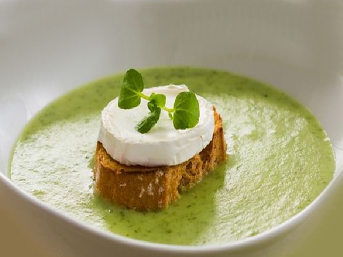 Velouté de cresson, croûton au fromage de chèvre