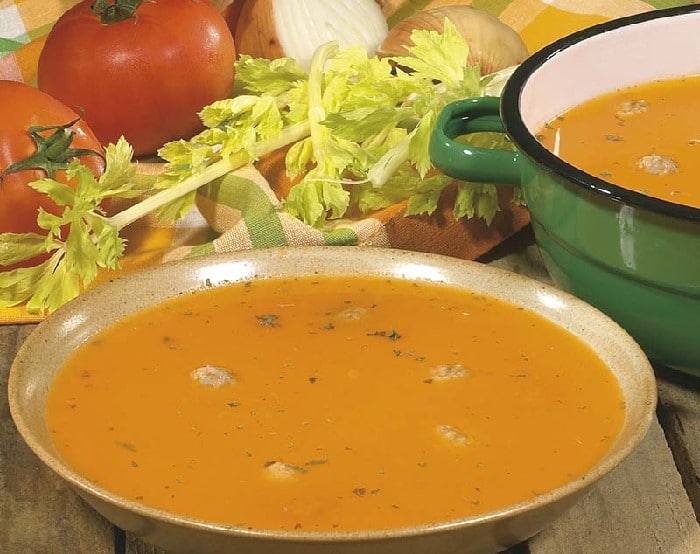 Velouté de tomate aux boulettes épicées
