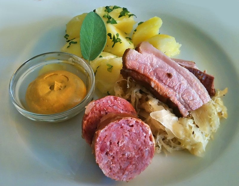 Weisswürsten poêlées à la bière, aux pommes et aux oignons