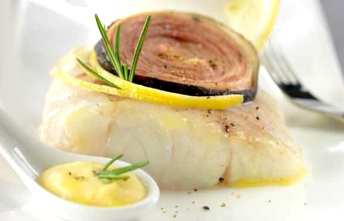 Pavé de lieu jaune à l’andouille de Guéméné et purée citronnée