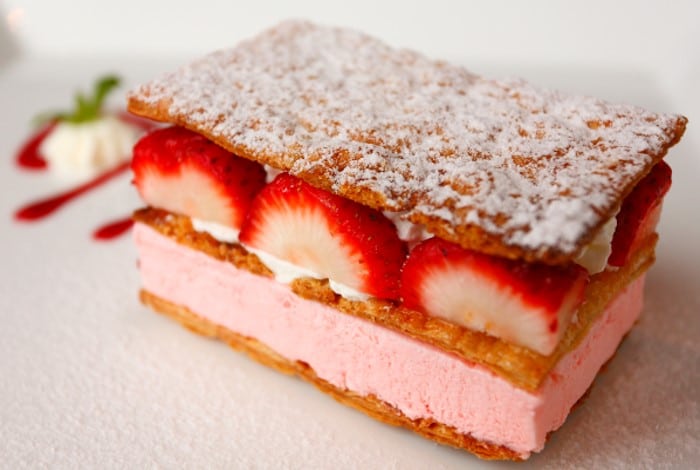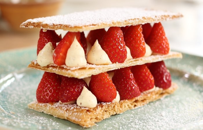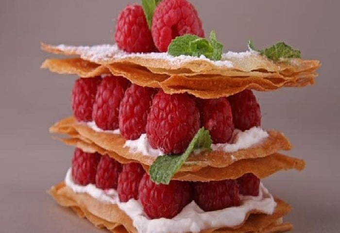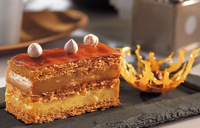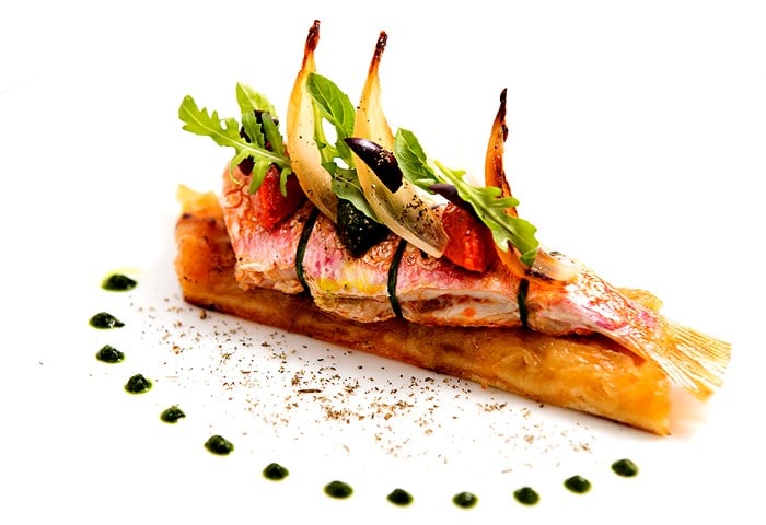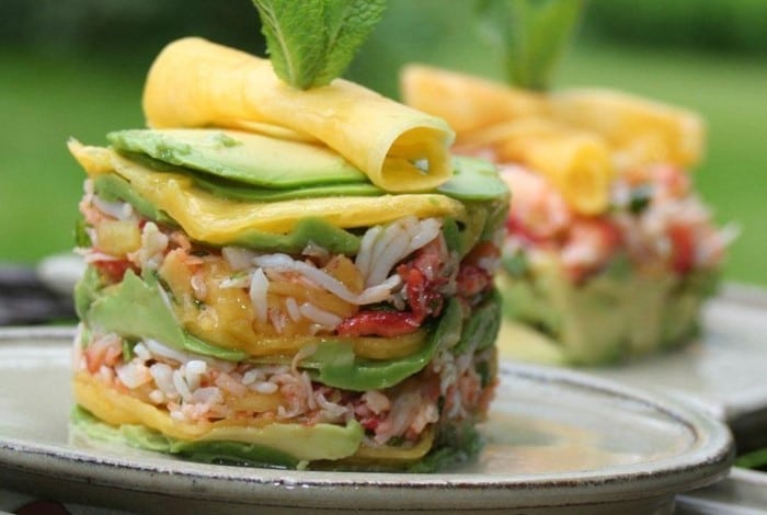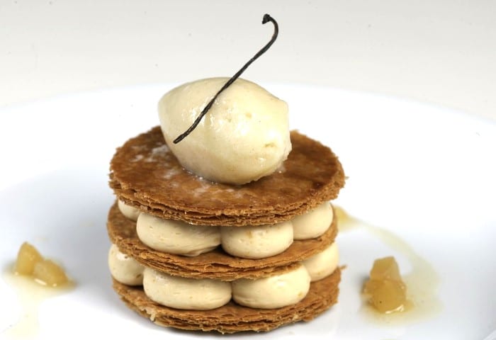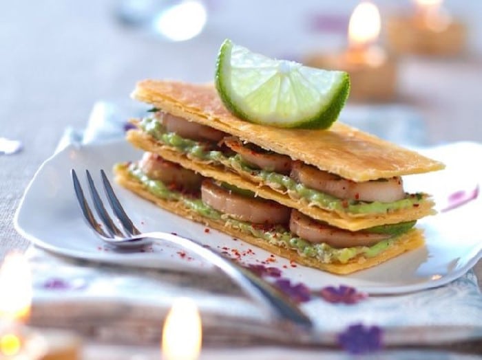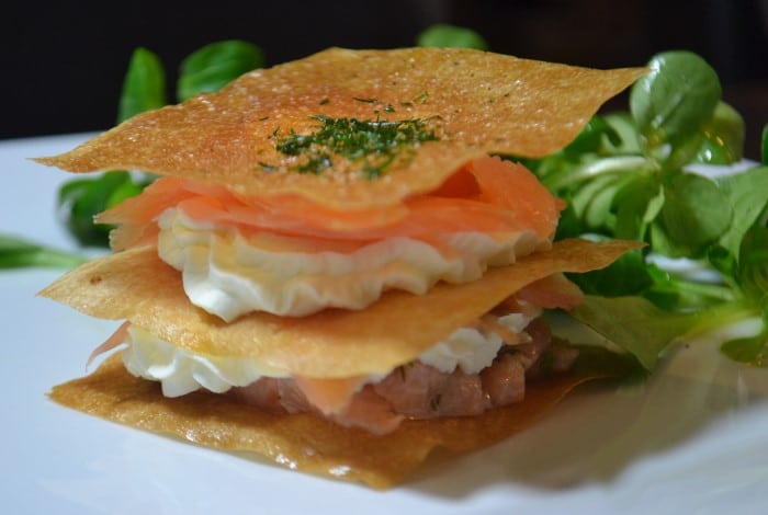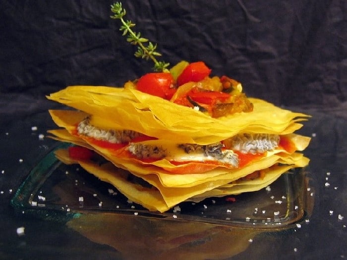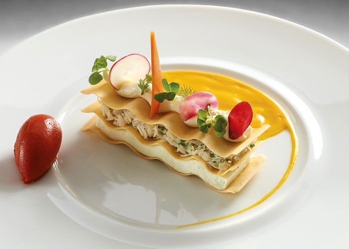 Millefeuille au crabe, au fenouil et à l’anis, sorbet piquillos